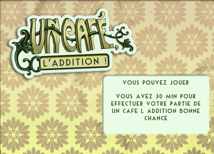 Un Café L'Addition est un jeu flash de type stratégie où vous devez regrouper au minimum un groupe de 4 tasses identiques afin d'augmenter votre score. Vous disposez au début de chaque partie d'un nombre limité de 5 tables à servir |